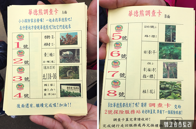 미션 종이에 적힌 대로 산을 오르면서 미션 장소에서 하나 둘 미션을 수행하고 도장을 받습니다. 각 미션 장소에서는 선생님이 안내를 합니다. 그리고, 어떤 미션을 수행해야 하는지 정보를 줍니다.