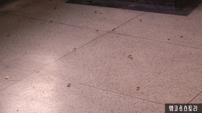 특히 정면에 보이는 기둥과 천장 텍스의 탄흔은 10층이나 그 이상의 높이에서 쏘았을 때만이 가능한 흔적으로, 1980년 당시 주변으로 전일빌딩보다 높은 건물이 없던 상황을 고려했을 시 이는 기총 소사에 의해 이루어진 것으로 계엄군의 폭력성을 여실히 증명하고 있습니다.