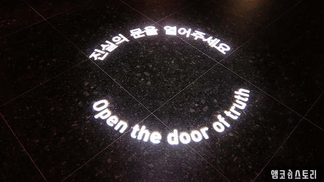 어두침침한 공간을 들어서는 발걸음, 이곳은 5.18에 대한 오해와 진실을 알아보는 공간으로 곳곳으로 가로막힌 벽에는 진실의 문이 설치되어 있습니다. 거짓에 가로막힌 과거, 그 문을 열고 진실을 마주하는 순간 미래를 향한 힘찬 발걸음이 시작된다는 스토리텔링이 인상적인 전시 구성입니다. 과거 전일빌딩에서 실제로 사용하던 문을 그대로 활용한 ‘진실의 문’ 역시 콘텐츠의 전달에서 막강한 힘을 발휘하며 전시를 더욱 알차게 채우고 있습니다.