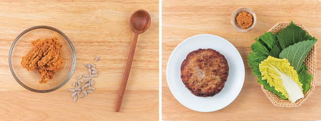 ⑥ 떡갈비와 양념장, 채소쌈을 함께 낸다.