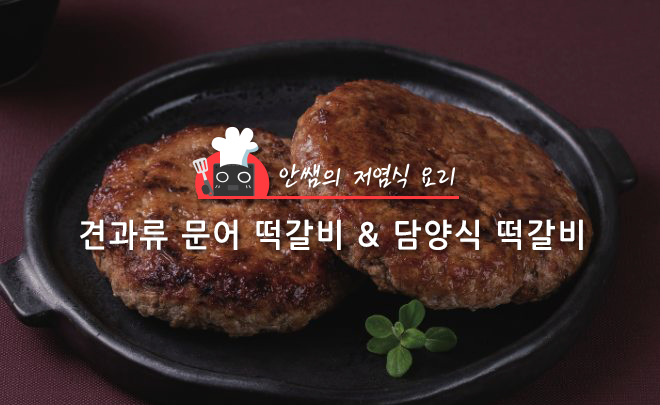 각 요리의 저염 비법을 보면, 견과류 문어 떡갈비는 문어가 가진 짠맛으로 간을 하고 견과류로 고소함을 살렸습니다. 담양식 떡갈비 & 채소쌈은 쌈장에 두부와 해바라기 씨를 섞어 염분을 낮췄습니다.