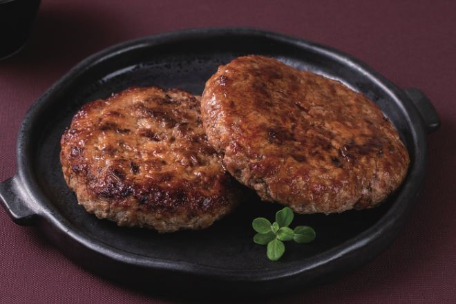 ④ 점성이 생긴 고기를 동그랗게 성형한 후 팬에 굽는다.