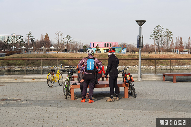 이어서 계양역 굴현프라자 주변을 아우르는 계양권역을 살펴봅니다. 드넓은 김포 들판과 어우러져 전통의 향기를 멋스럽게 풍기는 수향원과, 자연을 느끼며 힐링하는 두리생태공원이 각각 수향 5경과 6경을 대표하고 있는 지역입니다. 뱃길을 가로지르는 계양대교는 마찬가지로 보행로가 뱃길의 남측과 북측을 연결합니다. 이곳의 전망 엘리베이터 역시 일대를 한눈에 담기 더없이 좋아보입니다. 귤현프라자는 시민들을 위한 수변문화공간으로 대포 분수, 시민 참여로 꾸민 아트월과 휴게공간 등이 조성되어 있습니다. 이곳은 코로나 이전만 하더라도 주말 아마추어 음악인들의 공연 명소로 각광을 받아왔는데요, 코로나 기승으로 활기를 잃은 공간의 모습이 참 쓸쓸하네요. 지역의 옛 장터를 테마로 조성한 활어 장터, 뱃길 조각 공원 역시 드문드문 인적에 유난히 바람이 차갑게만 느껴집니다. 그 외 굴포천이 아라뱃길과 합류하는 곳에 조성된 휴식공간인 아라등대공원, 아라뱃길 미니어처 조형물이 있는 파크웨이미당, 김포공항에 이⋅착륙하는 비행기를 바로 머리 위에서 조망할 수 있는 플라잉가든이 있으며 뱃길 호안을 따라 조성된 경관림은 계절마다 알록달록 제철꽃들이 만발합니다.