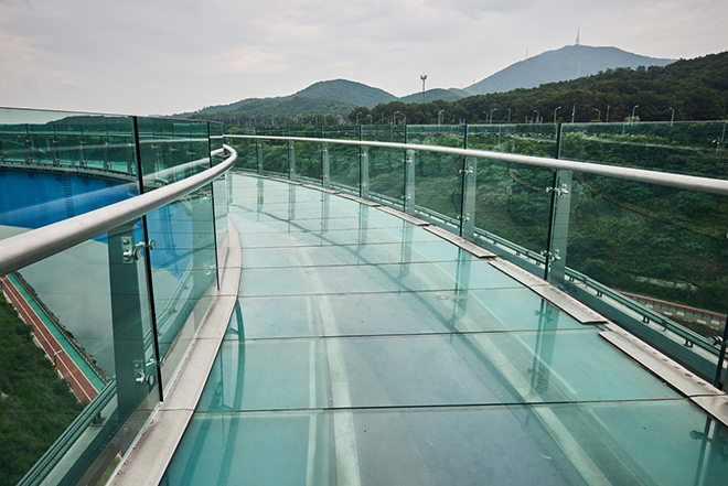 다음으로 시천권역은 수향 3, 4경을 포괄합니다. 젊음이 느껴지는 축제의 현장! 사천가람터와 국내 최대의 인공폭포 아라폭포가 이 지역을 대표하고 있는데요, 특히 폭포 인근의 아라마루는 물 위 45m 높이에 위치한 원형 모양의 전망대로 바닥이 투명한 유리로 되어 있어 짜릿한 볼거리를 제공합니다. 그 외 시천가람터 내 주말 나들이 명소로 유명한 가족소풍마당, 이른 봄 은은한 향기와 함께 피어나는 매화를 주제로 조성된 수도권 최초의 매화 테마공원 매화동산, 다양한 문화 행사와 수상 레저 스포츠를 즐길 수 있는 명소들이 즐비합니다. 뱃길을 가로지르는 시천교는 양쪽을 자유롭게 오갈 수 있는 보행로가 있습니다. 다리 위 그곳의 전망 엘리베이터를 오르자 수향 3경이 한눈에 펼쳐지는데요, 아라뱃길의 랜드마크 아라마루와 유람선을 탈 수 있는 시천나루, 수산물 직판장과 식음매장, 홍보관 등을 갖춘 수산물 특화 관광명소 서해 5도 수산물 복합문화센터, 시천샘 물길과 오솔길이 어우러진 아라뱃길 속 작은 정원 시천 주민생활공간 등이 조망됩니다. 코로나19로 유독 한산한 풍경 속에 존재하는 명소들은 어딘지 쓸쓸함을 자아내는데요, 어서 이 지긋지긋한 코로나19가 사라져 다시금 사람들로 북적이는 활기찬 아라뱃길의 풍경을 마주하고 싶네요.