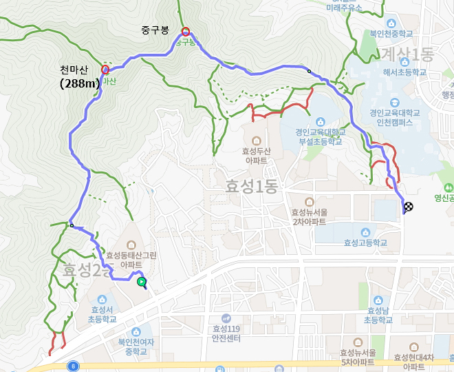 인천광역시 서구와 계양구를 가르는 천마산은, 해발 288m로 계양산과 더불어 계양구를 대표하는 산입니다. 서구 공촌동, 심곡동과 계양구 효성동 사이에 걸쳐 있답니다.