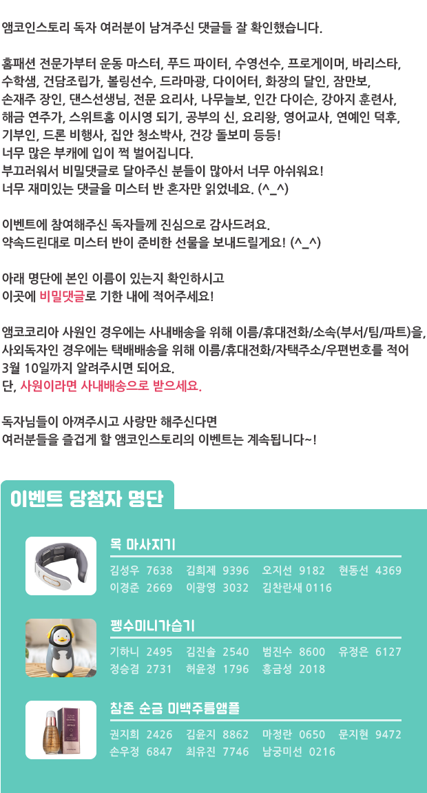 | 웹진 [앰코인스토리] 깜짝 땡땡 퀴즈 이벤트 (756) | 2021.02.10 |