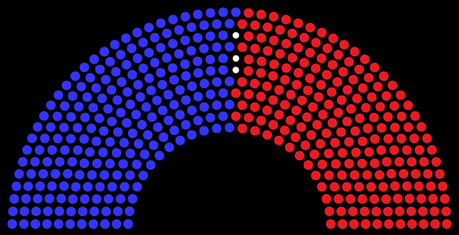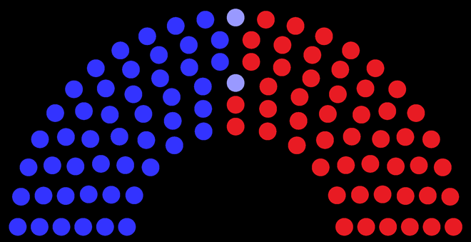 입법의 효력은 상·하원 둘 다 통과가 되어야 하기에 이런 점을 보완할 수 있는 나름 합리적인 제도라 할 수 있습니다. 하원의원 대표인 하원 의장은 다수당에서 선출하고, 상원 대표는 부통령이 맞습니다. 2021년 2월, 현재 하원의장은 다수당인 민주당이고, 상원의장은 역시 대통령이 민주당에서 당선이 되었으므로 민주당이 부통령입니다.