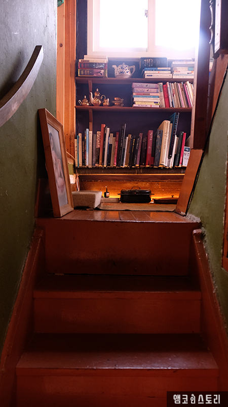 일명 ‘재미집’으로 불리기도 한다는 책방은 미로 같은 구조가 공간을 탐험하는 재미를 배가시킵니다. 고개를 숙여 구석으로 파고들면 계단을 두, 세 칸 올라 만날 수 있는 다락공간은 특히 아늑함으로 눈길을 끄는데요, 마음에 드는 책 한 권을 손에 들고 그곳의 앉은뱅이 의자에 엉덩이를 붙여봅니다. 천천히 책장을 넘기는 손, 홀짝홀짝 목마른 입을 적셔주는 건 커피 혹은 차 그도 아님 맥주나 와인입니다. 구옥의 내부는 한파가 몰아치는 날이면 특히 외풍으로 인해 허벅지에 찬기가 돌기 마련인데요, 그럴 때면 지척에 비치된 돌돌 말린 담요를 펼쳐 덮어주면 만사 OK랍니다.
