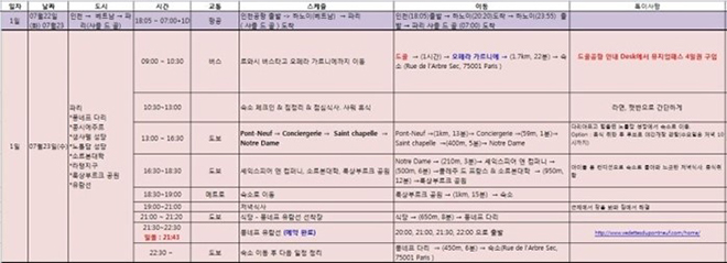오후 일정은 퐁네프다리 > 콩시에리주리 > 생샤펠 > 노트르담 성당까지 갔다가 숙소로 돌아와 저녁을 먹고 퐁네프 유람선을 타고 파리 야경을 보는 일정이다. 구글에 물어보면 정확한 거리와 시간을 알려준다.