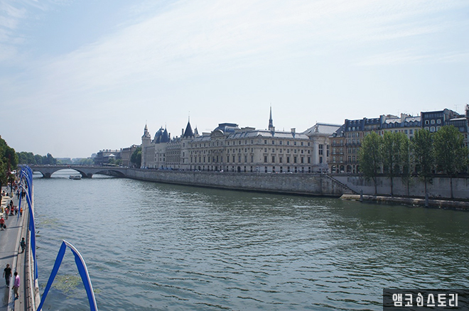 숙소 바로 근처에 퐁네프 다리가 있다. 다리 위에서 둘러보니 정말 멋스러운 건물들이 센 강을 따라 줄지어 있다. 저 강 건너편 길게 있는 건물이 우리의 첫 번째 목적지인 콩시에르주리다.