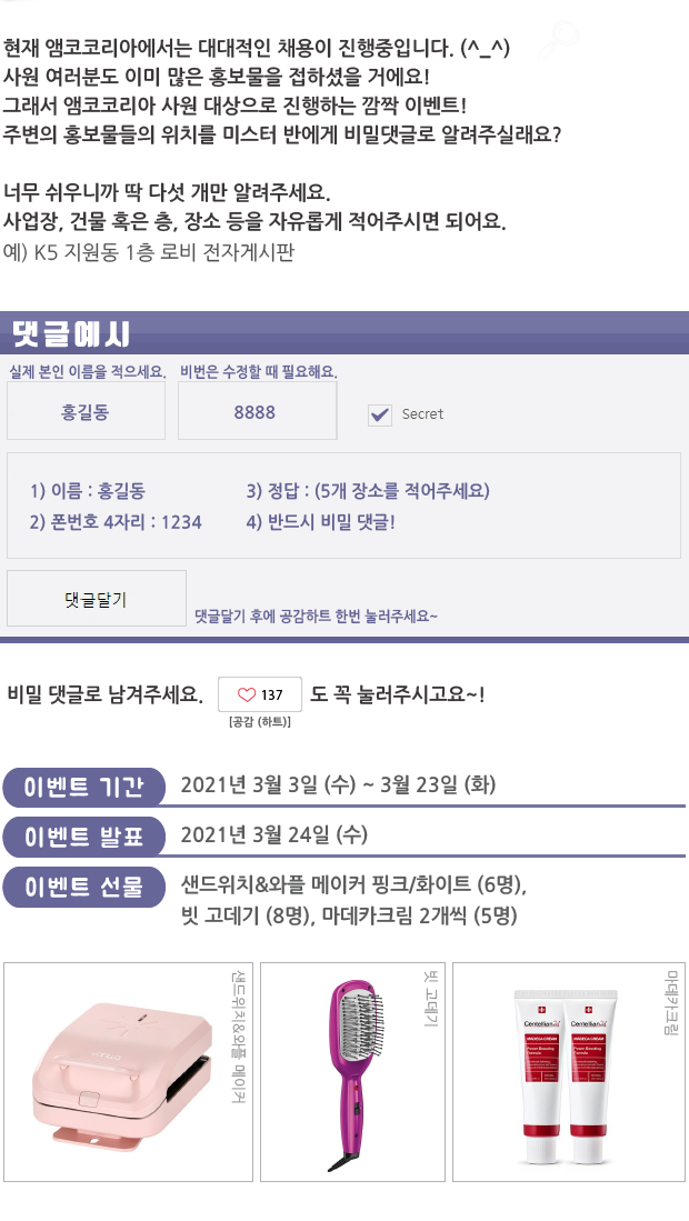 | 웹진 [앰코인스토리] 앰코를 찾아라! 이벤트 결과 발표 (35) | 2021.03.24 |