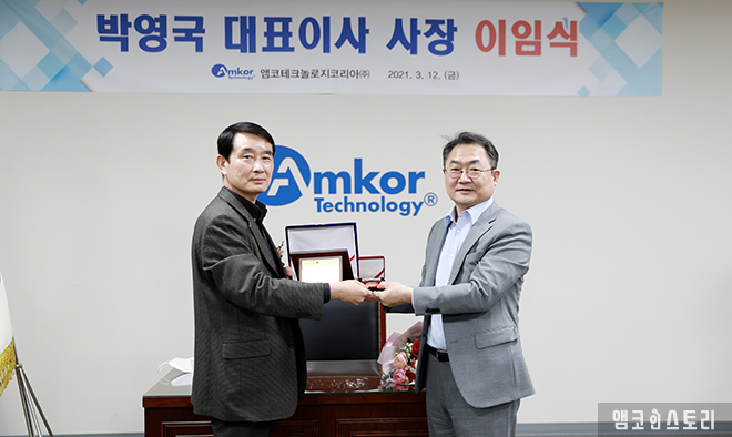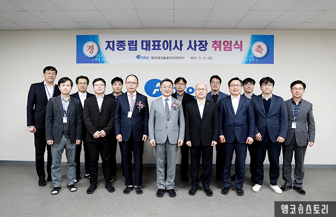 2021년 3월 12일 금요일, 앰코테크놀로지코리아㈜ 대표이사에 취임한 지종립 사장이 K5사업장에서 전 임원과 관리자들이 참석한 가운데 취임식을 가졌습니다.