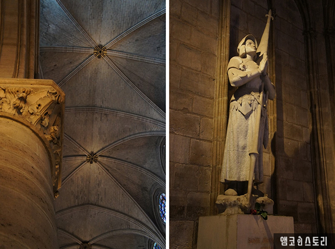 천정을 올려다보는데 어떻게 저 넓은 공간을 무너지지 않게 촘촘히 메꿨는지 경이로울 따름이다. 주변을 천천히 돌아보니 기도하는 잔 다르크 동상도 보인다.