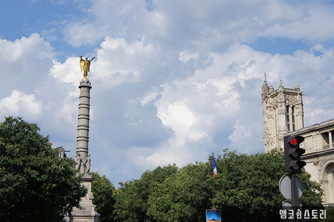 노트르담 대성당 관람을 마치고 숙소로 돌아가는 길. 푸른 하늘의 뭉게구름도 건축물들과 하나 되어 파리의 아름다움을 더욱 돋보이게 한다.
