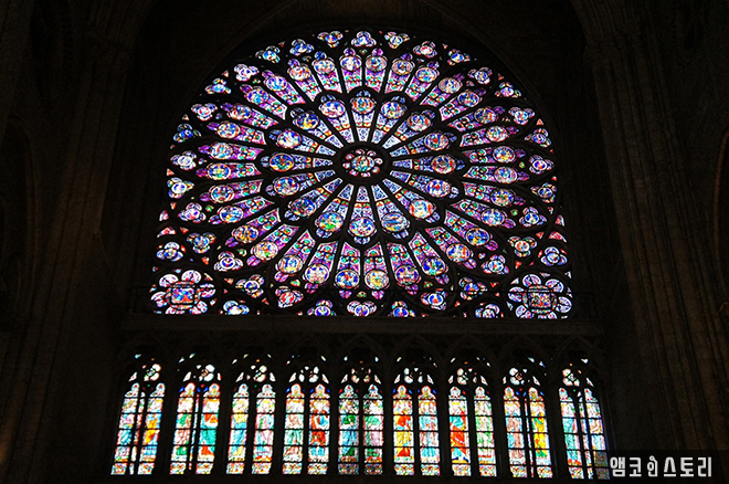 큰 스테인드글라스 창이 그 유명한 ‘장미의 창(Rose window)’이다. 크기가 13m나 된다고 하는데. 정말 이름만큼이나 아름다운 스테인드글라스 작품이다. 아름다움이 사진에 다 담기지 않아 아쉽다.