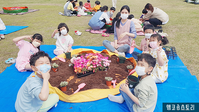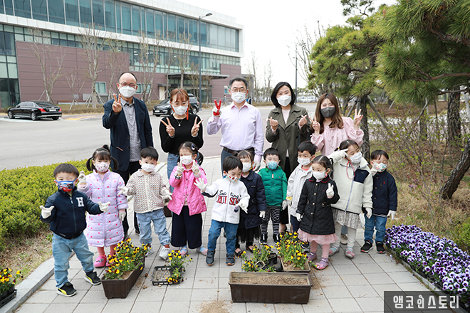 이날 전 사업장의 사원 대표들은 뱅갈 고무나무, 녹보수, 해피트리 등의 실내 공기 개선에 효과가 있는 나무를 부서 내 비치할 수 있도록 작업하였습니다. 전 사업장의 앰코어린이집 원아들도 함께하여 작은 고사리손으로 팬지 등의 초화 심는 것을 돕기도 했습니다.