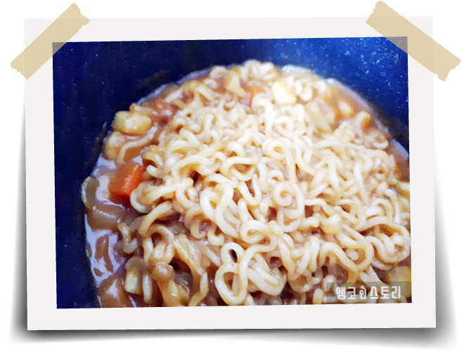 ③ 끓인 라면에 먹다 애매하게 남은 카레를 부은 후 1분 정도 더 끓인다.