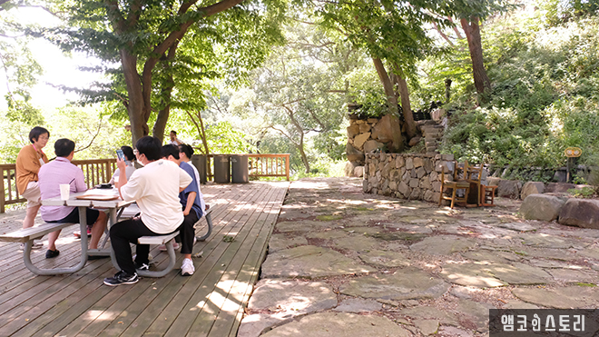 확 트인 무등산 전경을 바라보며 힐링의 시간을 즐길 수 있는 카페는 일찍이 ‘자연 속 경치 좋은 뷰 맛집’으로 유명세를 치렀는데요, 산 중턱에 있는 카페는 그곳을 가는 길 또한 빼어난 풍광의 연속으로 산길 드라이브 코스로 인기가 많답니다. 풍광이 좋다 하니 산 중턱 조그마한 카페인 줄 알았는데 생각보다 제법 큰 규모의 건물이 우뚝 서 있습니다. 아래쪽 공터에 마련된 널찍한 주차장에서 손쉽게 주차를 마치고 안내 표지판이 가리키는 길을 따라 곧장 걸어 올라옵니다. 무등산 편백휴양림 인근에 위치한 수만리 커피는 산 중턱에 자리해 경치는 물론 청정한 공기로도 유명합니다. 애쓰지 않아도 단번에 와닿는 상쾌함, 부러 크게 들이마시는 한숨에 그동안 묵은 코로나19 체증이 확 내려가는 기분입니다. 이 얼마 만에 맡아보는 신선한 기운인지요!
