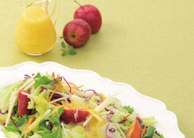 양상추 샐러드 & 과일 드레싱은 양상추, 치커리, 적양배추 등의 채소 위에 사과, 파인애플, 레몬즙을 갈아 얹어 먹는 샐러드입니다.