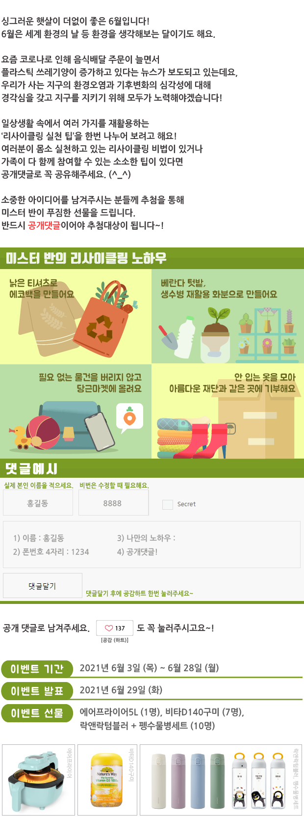 | 웹진 [앰코인스토리] 리사이클링 노하우 이벤트 결과 발표 (26) | 2021.06.29 |