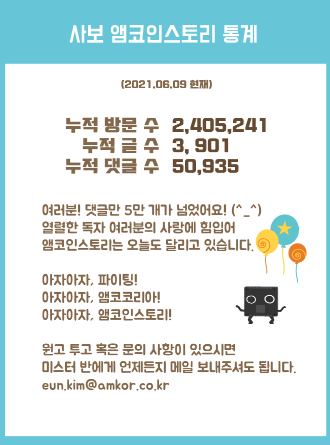 | 웹진 [앰코인스토리] 앰코코리아 53주년 기념 땡땡퀴즈 이벤트 결과 발표 (32) | 2021.05.24 |