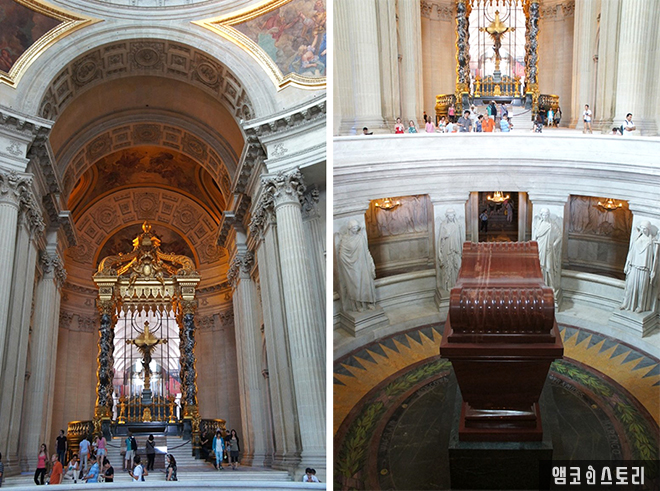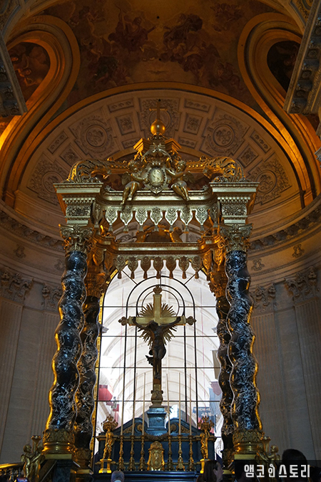 내부로 들어가 본다. 들어가자마자 보이는 십자가와 예수의 상, 그리고 돔 천정 아래쪽에는 정말로 큰 관이 보인다. 저것이 바로 나폴레옹의 관이라고 한다.