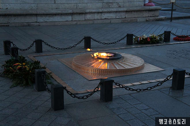 개선문 전망대에서 엘리베이터를 타고 1층으로 내려오니 무명 용사의 넋을 기리는 꺼지지 않는 불이 보인다. 수많은 전쟁을 치른 프랑스 국민이 무명 용사들에게 바치는 의미로 1년 내내 꺼지지 않는다고 한다.