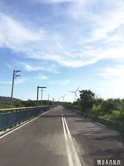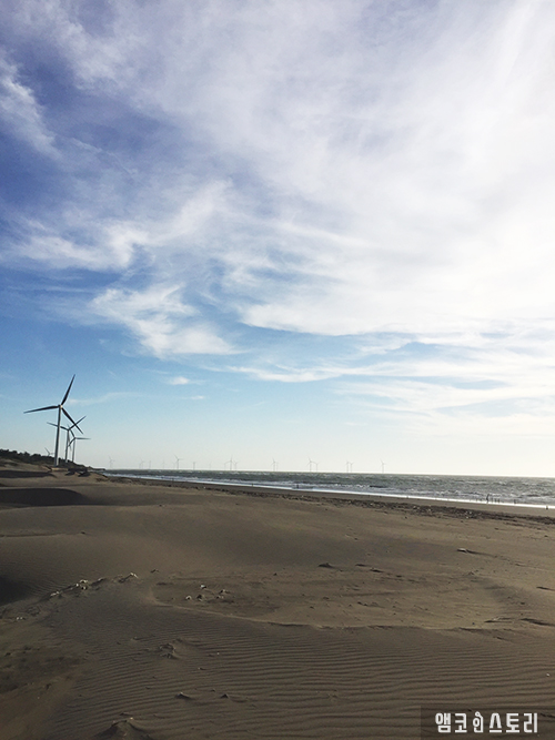 한쪽으로는 가지런히 위치한 풍차가 돌고 있어 바다와 잘 어우러집니다. 다양한 형태의 모래언덕 및 식물들을 보면 산책이 지루하지 않습니다. 다만, 바람이 세게 불 때는 모래가 날려 얼굴을 때릴 수도 있으니 주의해야 합니다.