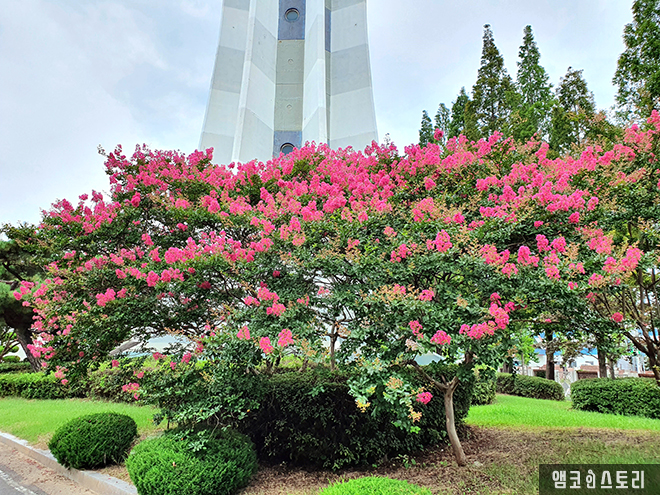 기록적인 폭염 속에서도 분홍빛 자태를 어김없이 뽐내는 백일홍은 우리들 눈을 정화시켜주고 호강시켜 줍니다.