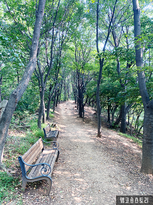 숲이 아주 울창해서 진한 자연의 냄새가 아주 좋았고요, 30도에서 오르내리는 더운 날인데도 의자에 앉아있으면 바람이 살랑살랑 부는 정말 힐링 숲길이었습니다. 더운 여름에는 집 근처에 한적하면서도 시원한 공원이나 작은 산에 방문해 보시는 것도 추천(마스크는 필수!)해요. 뜨거운 아스팔트 열기에서 벗어나 자연 바람으로 힐링 한번 해보세요. 항상 코로나 조심하시고 오늘도 힘내세요!