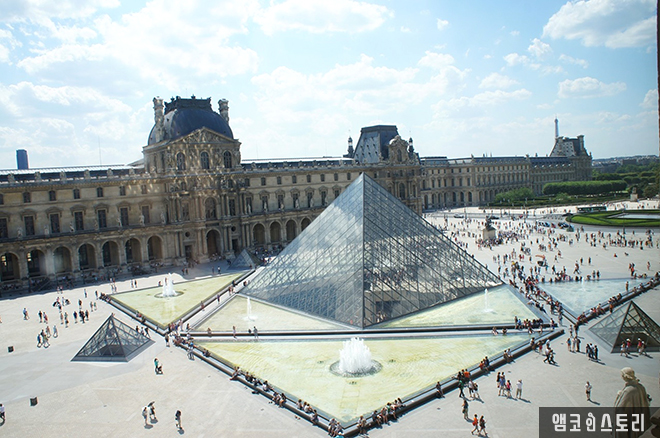 저 뒤에 루브르 박물관과 피라미드가 살짝 보인다.