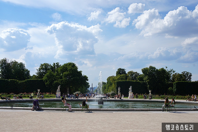 아름다운 튈르리 가든 너머로 콩코드 광장의 오벨리스크도 살짝 보이는데, 바로 왼편이 오랑주리 미술관이 있다.