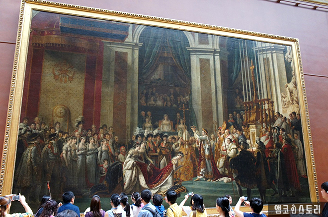 자크 루이 다비드 (Jacques Louis David)의 <나폴레옹의 대관식>도 유명한 작품이라 책에서 많이 봤었는데 루브르에 전시된 실물의 크기를 보니 놀라울 따름이다. 높이 6.21, 길이 9.79m의 대작이다.
