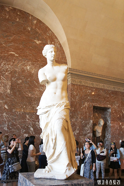 루브르의 또 다른 자랑거리인 밀로의 <비너스 상>이다. 역시 명작 앞에는 사람들이 몰려 있어 작품만 사진에 담기는 불가능했다.
