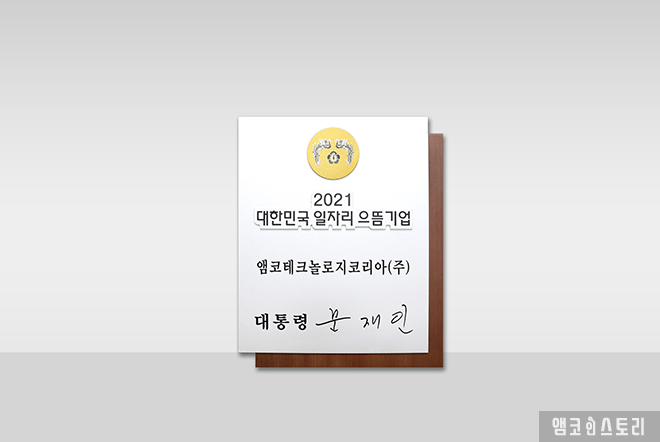 앰코코리아, 고용노동부 2021 대한민국 일자리 으뜸기업 선정