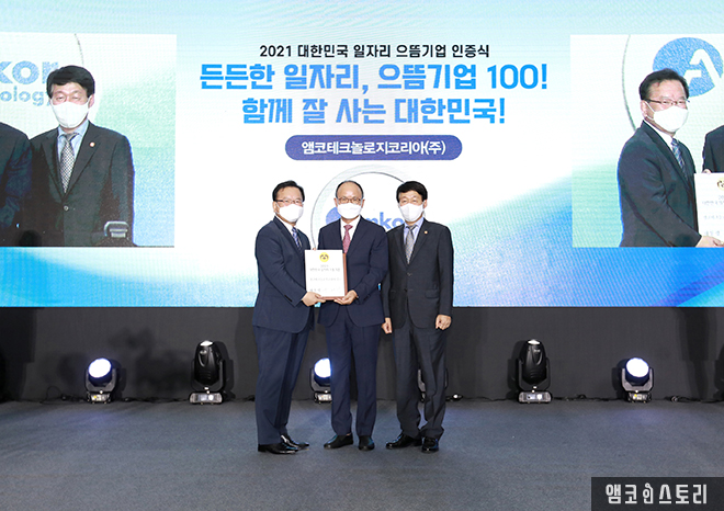 앰코코리아, 고용노동부 2021 대한민국 일자리 으뜸기업 선정