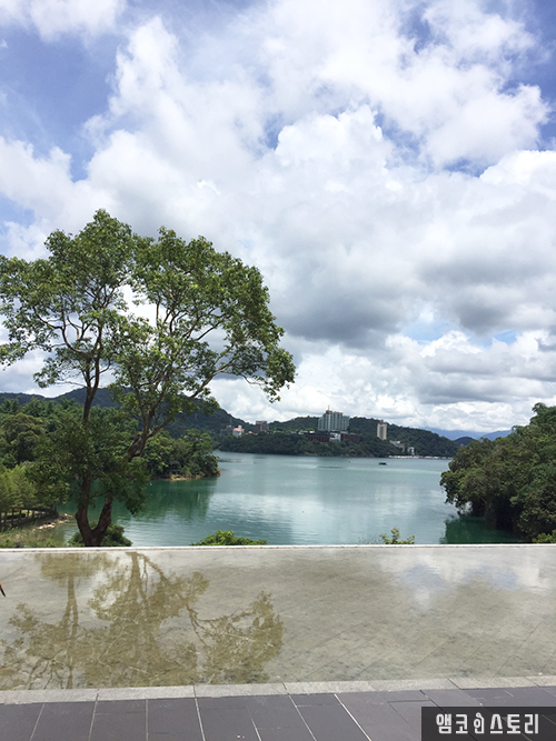 여러 경치 좋은 곳들이 있지만, 대만인들에게 제일 인기 좋은 곳 중 하나는 일월담 Xiangshan Visitor Center입니다. 이 건물은 물과 건물의 조화를 주제로 설계되었다고 하네요. 그래서인지 건물 곳곳에 물이 있고, 그 물과 건축물의 디자인이 잘 어우러지는 것 같습니다. 특히, 작은 수영장과 호수가 일직선으로 이어진 이곳은 포토존이기도 합니다. 호수의 아름다운 전경이 작은 수영장에 투영되어 더 예쁜 경치를 만들어 내지요.
