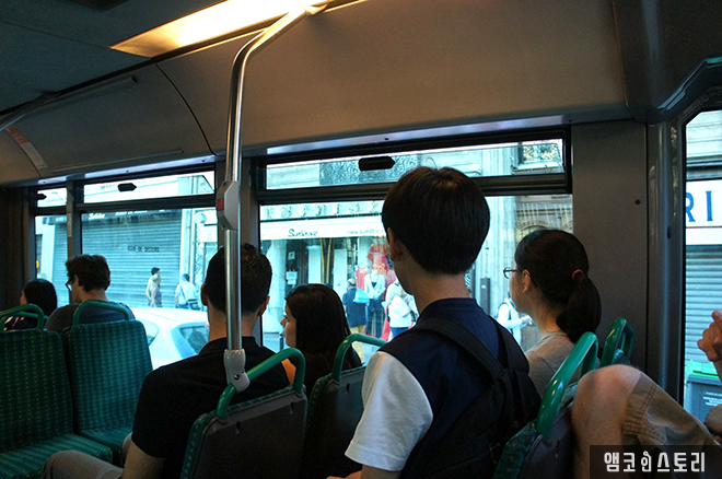 루브르 가는 버스를 타야 하는데 관광지에서 좀 벗어난 곳까지 걸어가야 했다. 늦은 시간이 아닌 데도 상점들 셔터가 내려가 있고 다니는 사람도 많지 않아 분위기가 썰렁했다. 파리 외곽에서는 강도를 조심해야 한다고 들었는데 얼핏 둘러봐도 우범지역인 듯한 느낌이 들어 바짝 긴장되었다. 버스 정류장에 버스를 기다리는 사람들도 인상이 험악한 것처럼 느껴져 마음이 불편했다. 오래지 않아 버스가 와 정말 다행이었다.