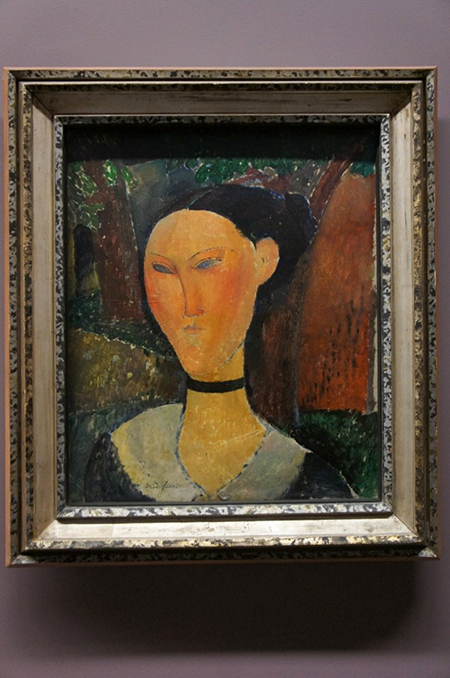 필자가 방문했을 때는 모딜리아니의 아내, 잔느 사진이 없었는데 아쉬운 마음에 인터넷에서 찾아본다. 모딜리아니의 그림은 눈동자가 없는 것이 특징인데, 상대방의 영혼을 알았을 때 눈동자를 그리겠다고 말을 한 적이 있다고 한다. 아래 잔느의 그림에는 눈동자가 있는데, 아마 잔느의 영혼까지 알게 되었을 때 그린 그림인 듯하다.