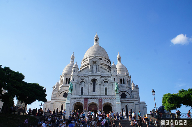 바로 앞에 샤크레쾨르 성당이 보이는데 다행해도 우리가 갔던 그 시간에 팔찌단은 보이지 않았다!