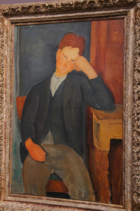그다음 작품은, 바로 필자가 제일 좋아하는 모딜리아니의 작품들이다. 유럽 여행을 떠나기 전에 미술 작품들에 대해서 관심을 가져보려고 서양의 명화들을 찾아보고 있었다. 우리가 익히 잘 알고 있던 작가들 외에 필자의 관심을 끄는 작가가 하나 있었으니, 그가 바로 모딜리아니다. 얼굴도 코도 목도 길쭉길쭉한데 눈동자를 그리지 않은 그의 그림은 한 번 보면 잊기 힘든 독특함이 있었다.