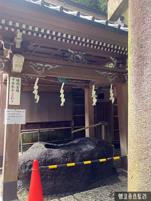 돌 터널과 도리문를 지나 끝에 있는 데미즈야에서 손을 씻어 자신을 깨끗하게 하고 나서 사무소에서 공양의 향과 초를 산다.