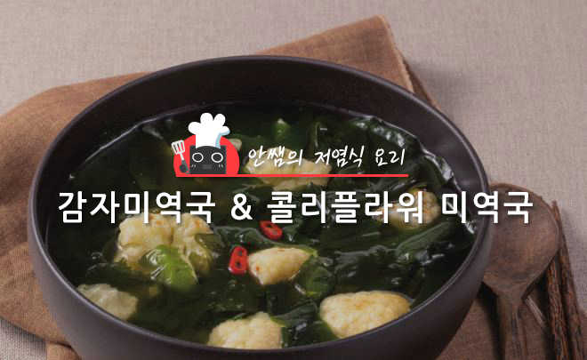 각 요리의 저염 방법을 살펴보면, 감자 미역국은 감자에서 나오는 전분이 깊은 맛을 내어 염분 사용을 줄이고, 콜리플라워 미역국은 건표고버섯과 건새우를 갈아 만든 천연 조미료가 나트륨을 줄이고 풍미를 높였습니다.