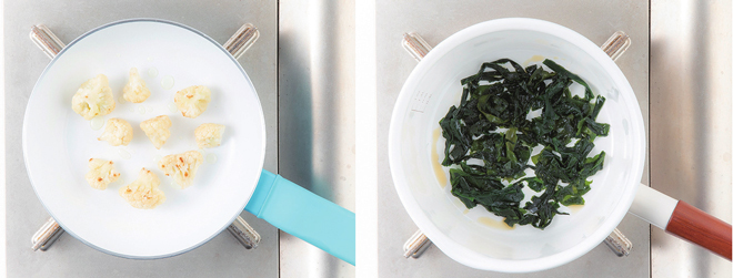 오늘 소개할 미역국은 감자와 콜리플라워를 넣어 만든, 감자미역국과 콜리플라워 미역국입니다.