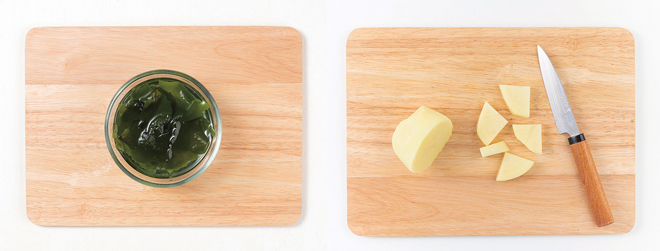 ② 감자는 껍질을 제거하고 한입 크기로 자른다.