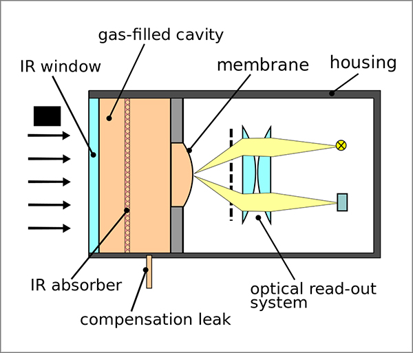 뱀들의 이러한 적외선 탐지 능력은 과학자들로 하여금 기술적 영감을 떠올리게 하기에 충분했습니다. 이 기술을 이용한 제품이 바로 적외선 측정 장치인 ‘골레이셀’입니다. 골레이셀은 적외선을 흡수하면 내부의 가스가 가열되어 팽창하는데, 이 팽창으로 인한 압력의 증가로 막을 변형시킵니다. 변형된 막에서 반사된 빛은 광 다이오드에 의해 검출되지요.