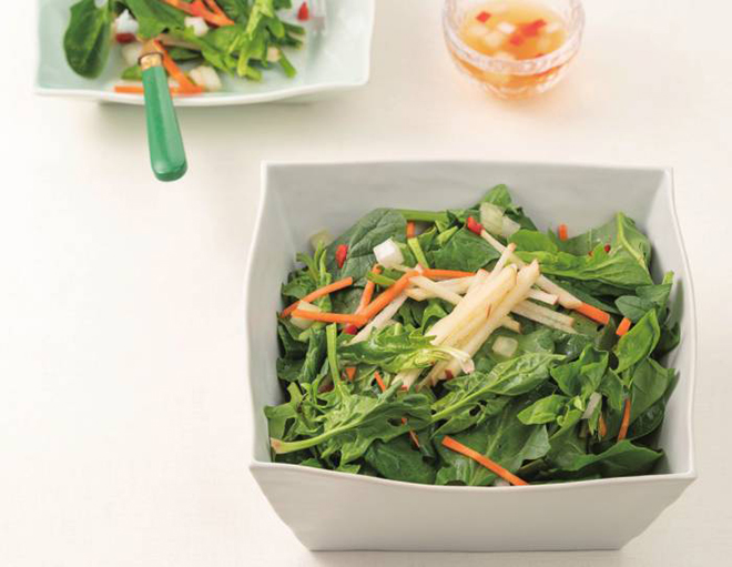 일반 시금치는 사계절 내내 나는 데 포항초는 10월부터 이듬해 3월까지가 제철입니다. 된장국에 넣어 끓일 때는 생으로 넣어도 되지만 수산(蓚酸)이 녹아내릴 수 있으므로 살짝 데친 뒤에 넣고 끓이면 된장의 영양을 훨씬 잘 흡수할 수 있습니다. 포항초는 비타민A, C, 칼슘, 철분이 풍부하고 뇌혈관 질환 예방에 좋은 엽산, 눈 건강에 좋은 루테인, 장 건강에 좋은 식이섬유가 들어있습니다.