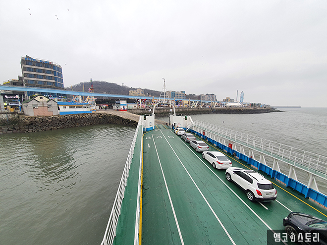 월미도 선착장은 월미도 광장 바다 방면에 있습니다. 소규모 간이식 건물이 매표소 기능을 하며 섬을 드나드는 표를 발권하고 있는데요, 인천에서 영종도까지는 평일 아침 8시부터 저녁 5시까지, 주말과 공휴일은 아침 9시부터 저녁 6시까지 정시에 출발하며, 영종에서 인천까지는 평일 아침 7시 30분부터 저녁 5시 30분까지, 주말과 공휴일 아침 9시 30분부터 저녁 5시 30분까지 한 시간 간격으로 운행됩니다. 아날로그적 감성이 충만한 수기작성 종이티켓을 받아들고 아담하게 마련된 대기실에서 배 시간을 기다립니다. 그리고 드디어 당도한 배는 생각보다 규모가 있었는데요, 승객과 차량이 줄지어 배에 오르면 커다란 뱃고동 소리와 함께 망망대해 바다를 가릅니다. 머리 위에서는 한 무리 갈매기 떼가 새우깡을 달라며 어지럽게 맴도네요.