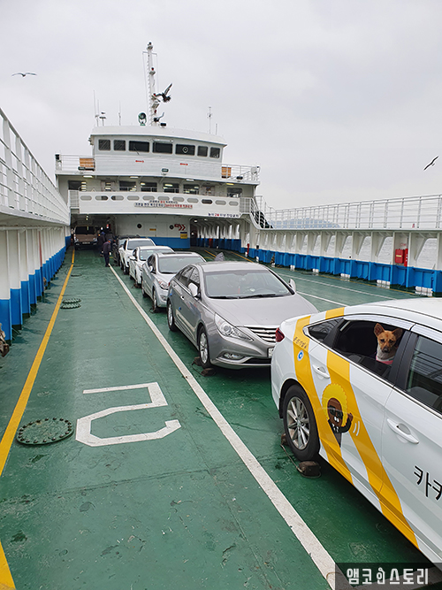 월미도 선착장은 월미도 광장 바다 방면에 있습니다. 소규모 간이식 건물이 매표소 기능을 하며 섬을 드나드는 표를 발권하고 있는데요, 인천에서 영종도까지는 평일 아침 8시부터 저녁 5시까지, 주말과 공휴일은 아침 9시부터 저녁 6시까지 정시에 출발하며, 영종에서 인천까지는 평일 아침 7시 30분부터 저녁 5시 30분까지, 주말과 공휴일 아침 9시 30분부터 저녁 5시 30분까지 한 시간 간격으로 운행됩니다. 아날로그적 감성이 충만한 수기작성 종이티켓을 받아들고 아담하게 마련된 대기실에서 배 시간을 기다립니다. 그리고 드디어 당도한 배는 생각보다 규모가 있었는데요, 승객과 차량이 줄지어 배에 오르면 커다란 뱃고동 소리와 함께 망망대해 바다를 가릅니다. 머리 위에서는 한 무리 갈매기 떼가 새우깡을 달라며 어지럽게 맴도네요.