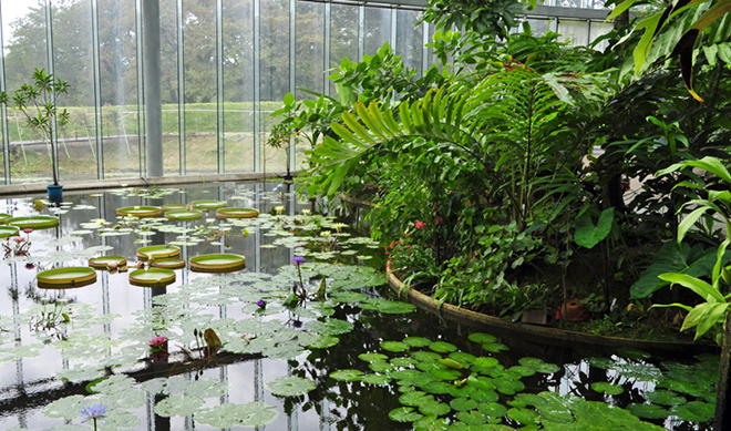 1875년에 지어진 가장 오래된 서양식 유리 온실로, 난초를 비롯한 열대 및 아열대 식물을 재배하고 일본 온실 원예에 선구적인 역할을 했습니다. 2012년에는 멸종위기종의 보존 및 전시하는 친환경 온실이 되었습니다. 열대 종류 약 2,700종을 재배하고 있습니다. 11월에는 서양란 전시회가 개최되기도 합니다.
